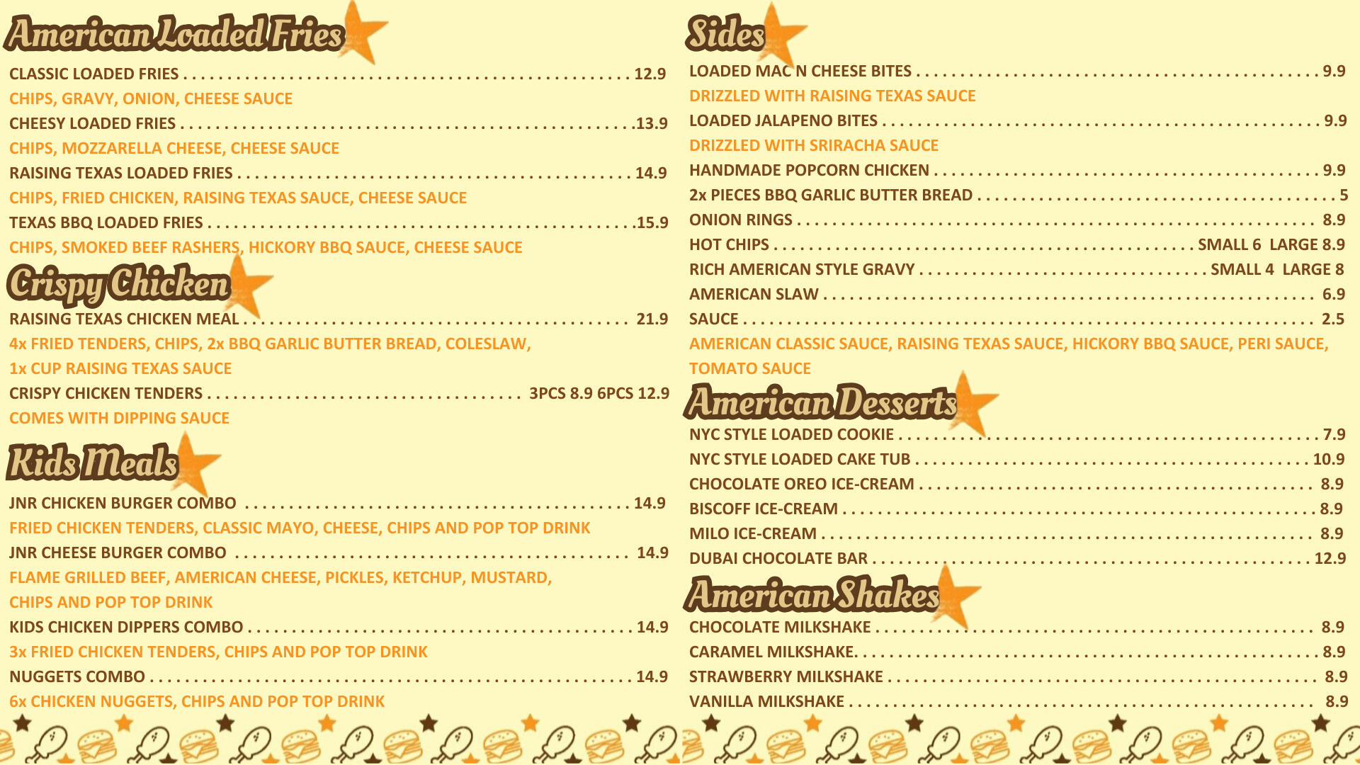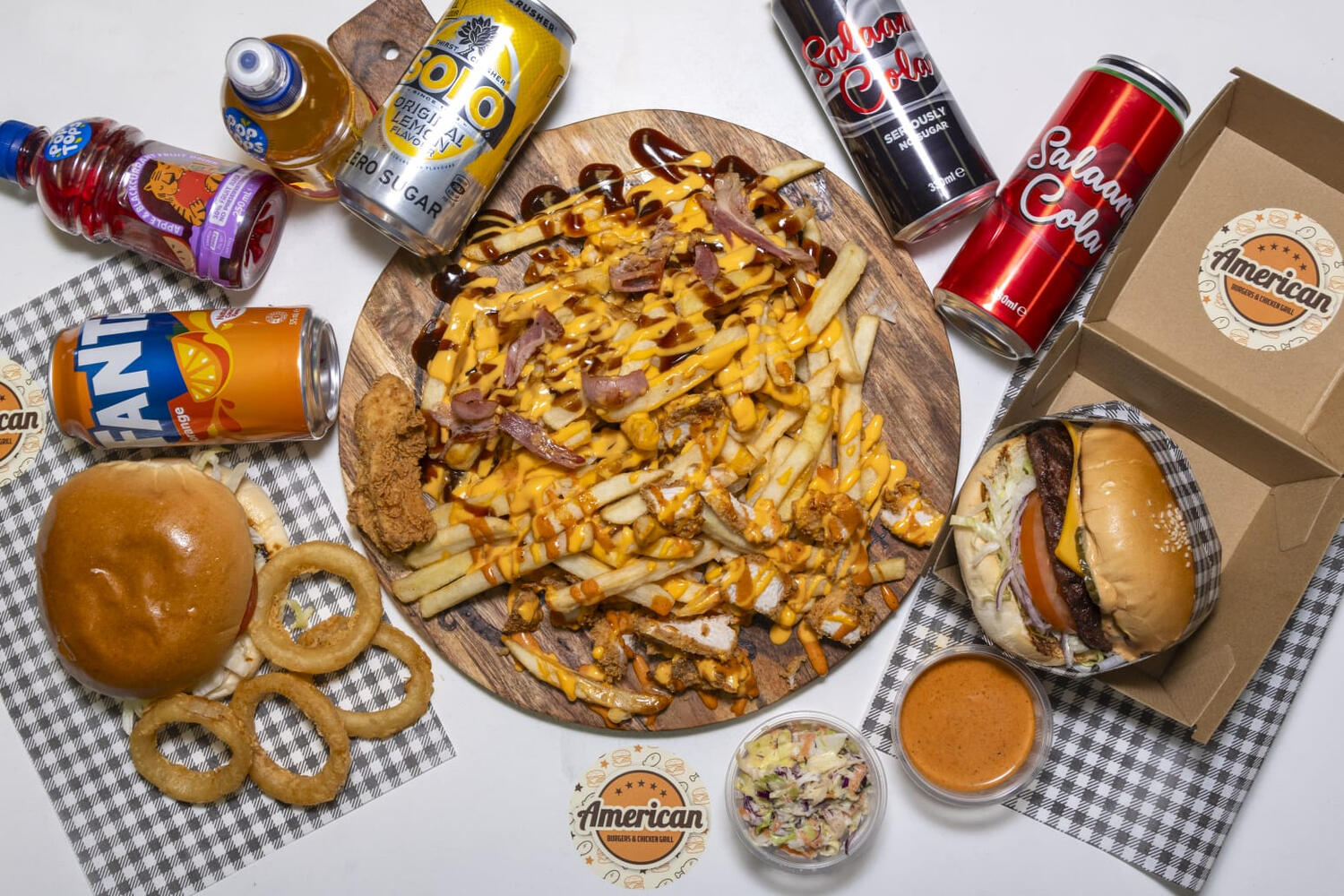 At American Burgers & Chicken Grill, we believe in the power of great food to bring people together. That’s why we’ve mastered the art of flame-grilled to create mouth-watering chicken and burgers that are as delicious as they are satisfying. Each dish is prepared with fresh, high-quality ingredients and grilled to perfection, offering you a taste that’s smoky, juicy, and full of flavour. Whether you’re stopping by for a quick bite or a family meal, we promise an unforgettable dining experience.”